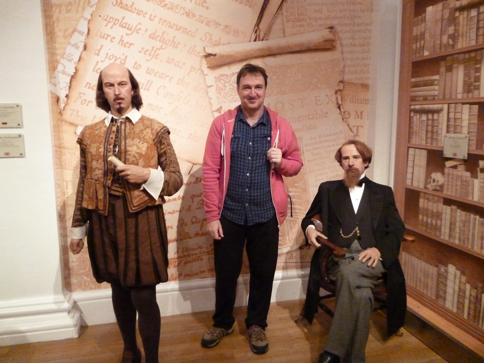I am including a photo of myself at Madame Tussauds’ with a recreation of the figures of a couple of likely fellows from the literary world. They are of course William Shakespeare and Charles Dickens and I like to think of myself giving these two some advice on how to make it big and some instruction on how to improve their writing. Haha.