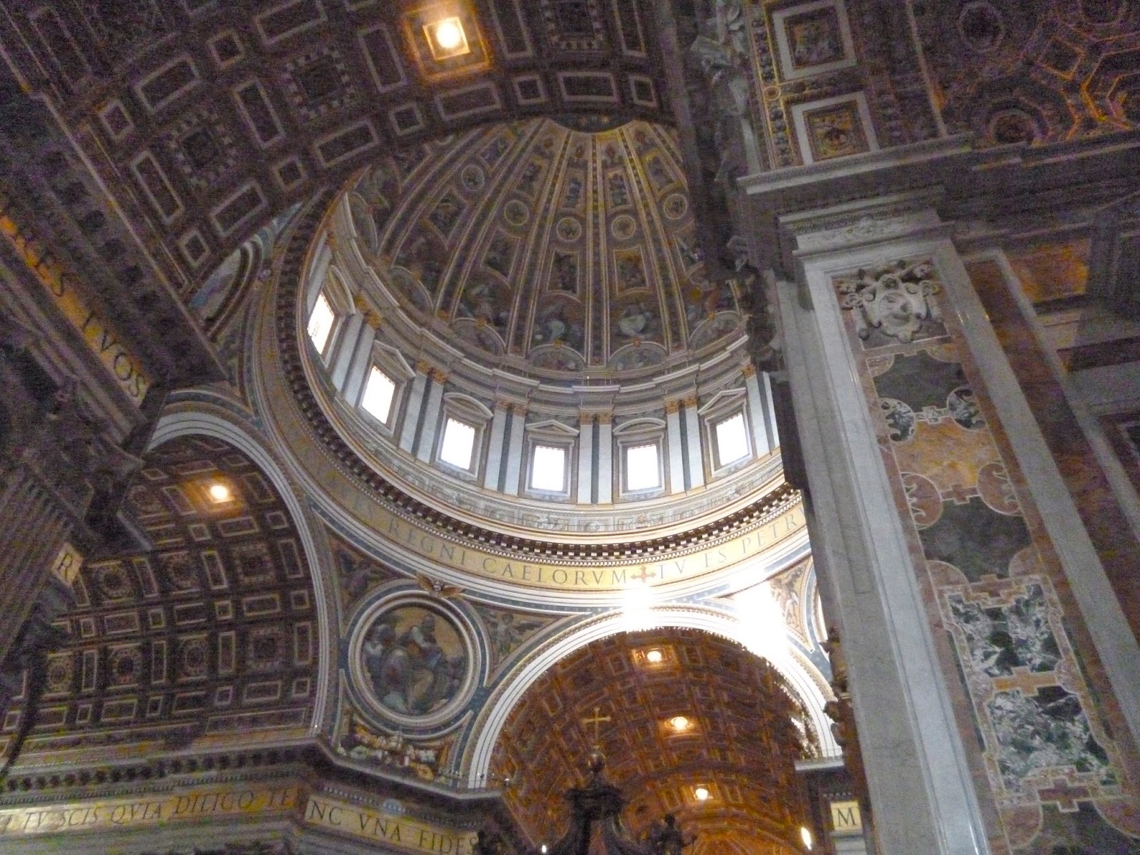 The last picture I have displayed is for anyone who may have wondered just what is under the dome of St Peter’s Basilica. Here it is! Taken from the floor of the church looking up into the dome it is obviously a magnificent piece of engineering, adorned with artwork and frescoes and this is only a small portion of a very large complex.
