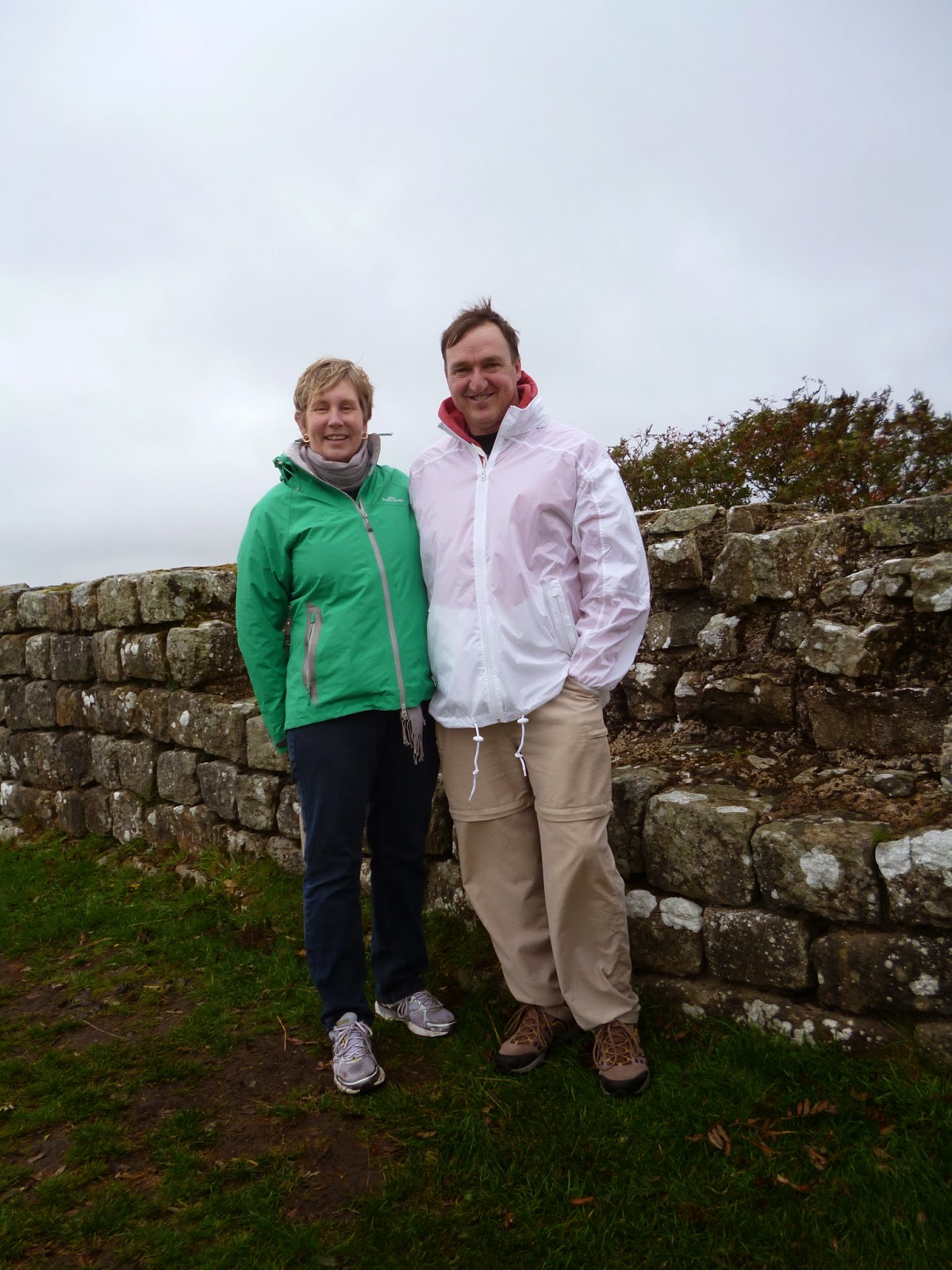 Earlier in the day Linda and I had stopped at another part of Hadrians Wall where a much smaller Roman installation had been located. All along the wall hikers and trampers now have their way and we were lucky as we gazed at the old stone ruins that a walker very kindly agreed to take our photograph together. There are not too many of the two of us on our trip so we were very grateful.