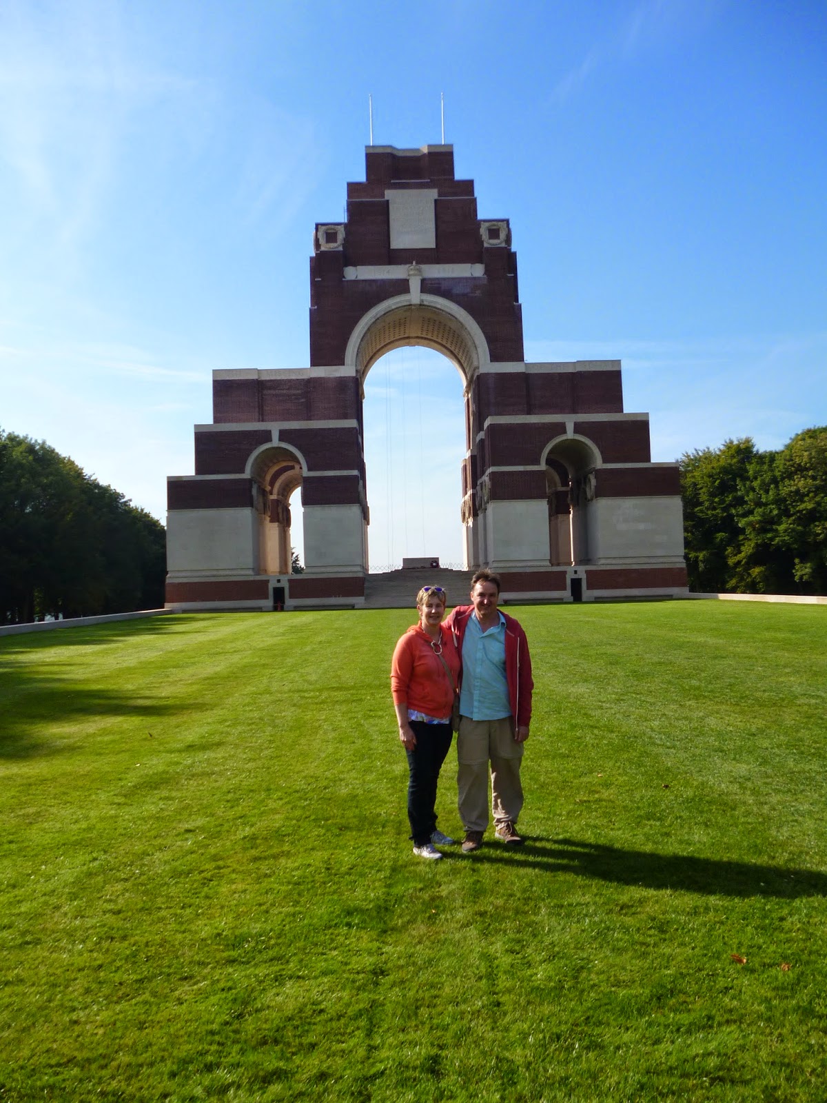 So, without trying to bore everyone silly with more photos of our trip, I thought it appropriate to provide a rare image of ourselves very kindly taken by some British tourists while we toured the magnificent memorial at Theivpal on the old line of the Western Front.