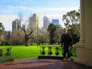 The bandstand in the photo above was built in the 1860’s and I thought a shot from it, of Linda, looking back towards Melbourne’s modern skyline added a nice touch to an historic piece of the city which has been in place a long time and seen it all as time has flown by. To the right is a shot of the full structure with the apartments of East Melbourne creeping into the background.