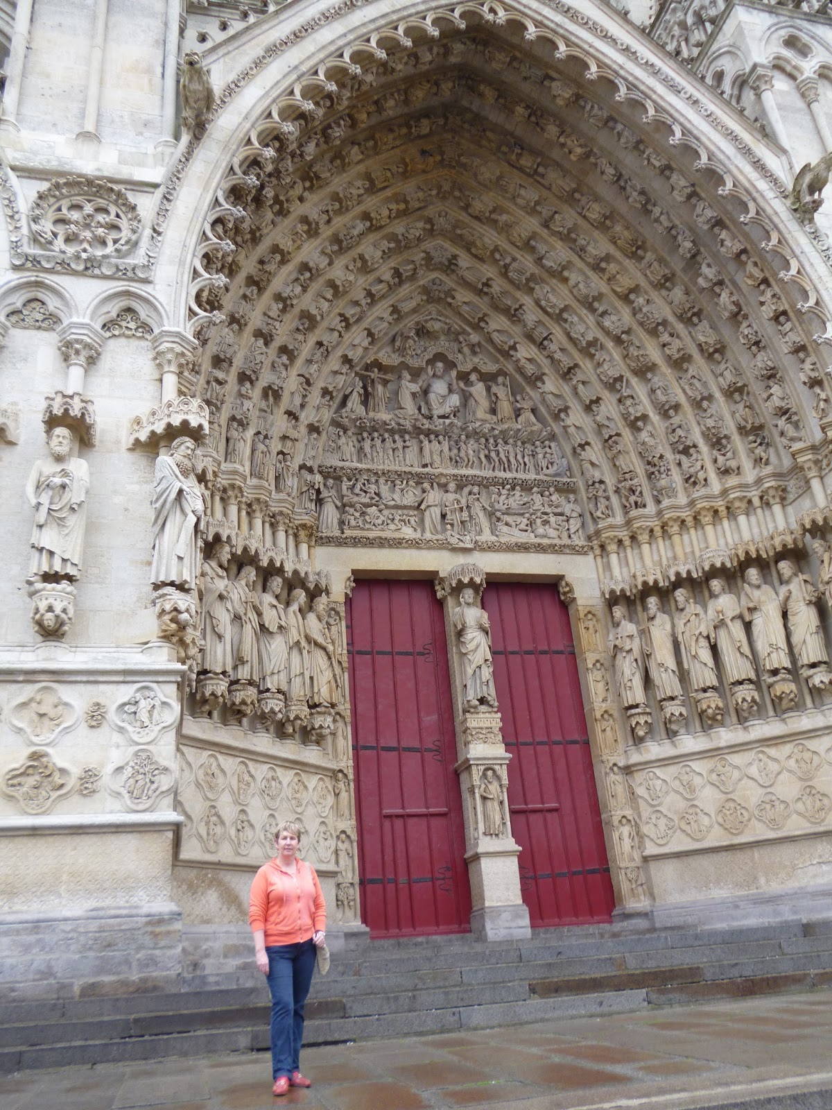 | Linda outside Amiens Cathederal. |