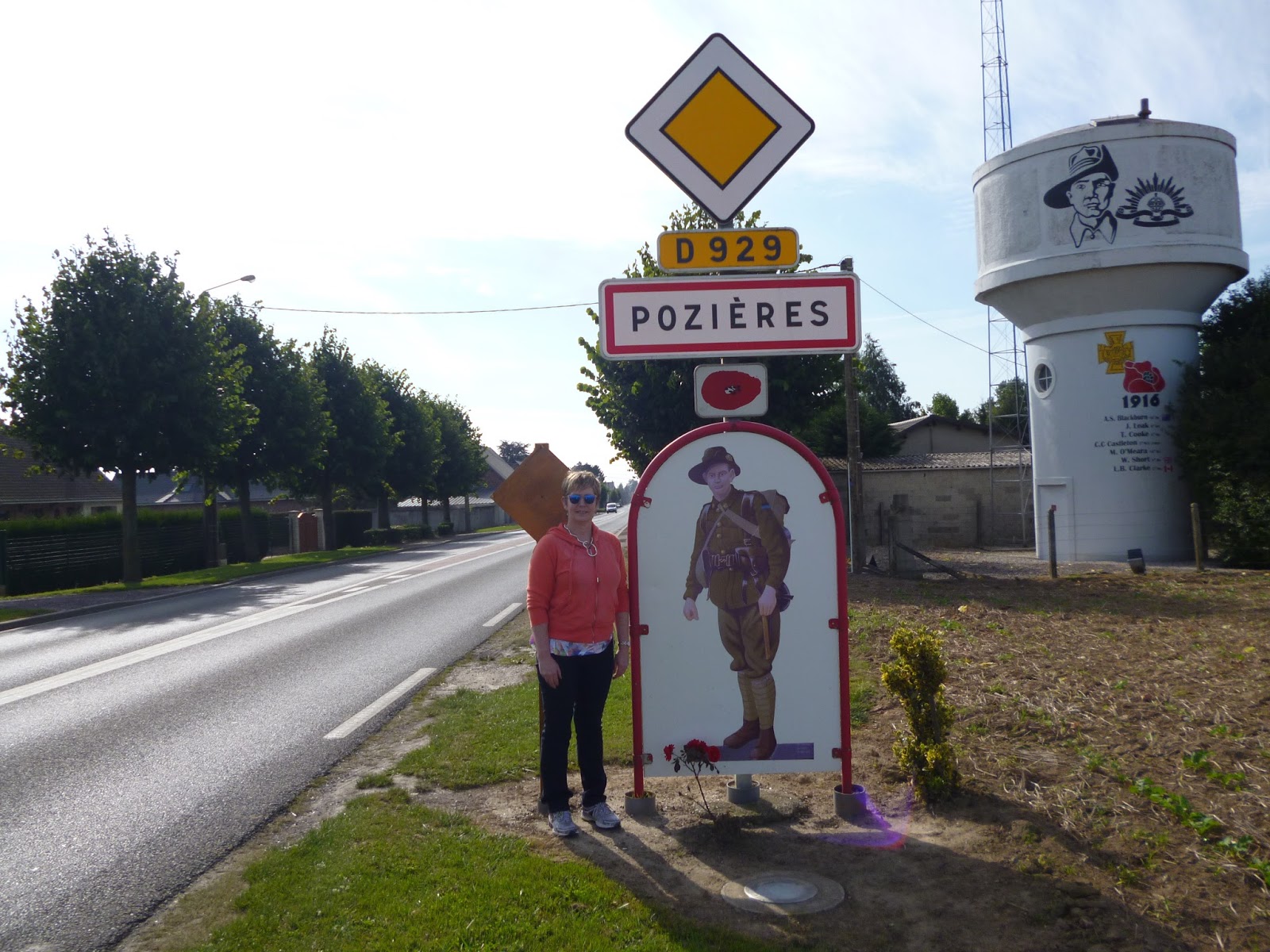 This is a picture of Linda, my lovely better half standing on the outskirts of the village of Pozieres in northern France on the 1st of October 2013. Pozieres, as I have described it a few times on this Blog, was the site of the bloodiest battle ever fought by Australian soldiers. 23 000 diggers fell within half a mile of this town sign in six weeks of hard fighting during the Somme offensive in the summer of 1916. The Australians captured the town and endured the heaviest artillery bombardment in the history of warfare as the Germans threw everything they had into a determined counter-attack. But the Australians held on and history records the Battle of Pozieres as a victory for the army from Downunder. A pyrrhic one as it turned out.
