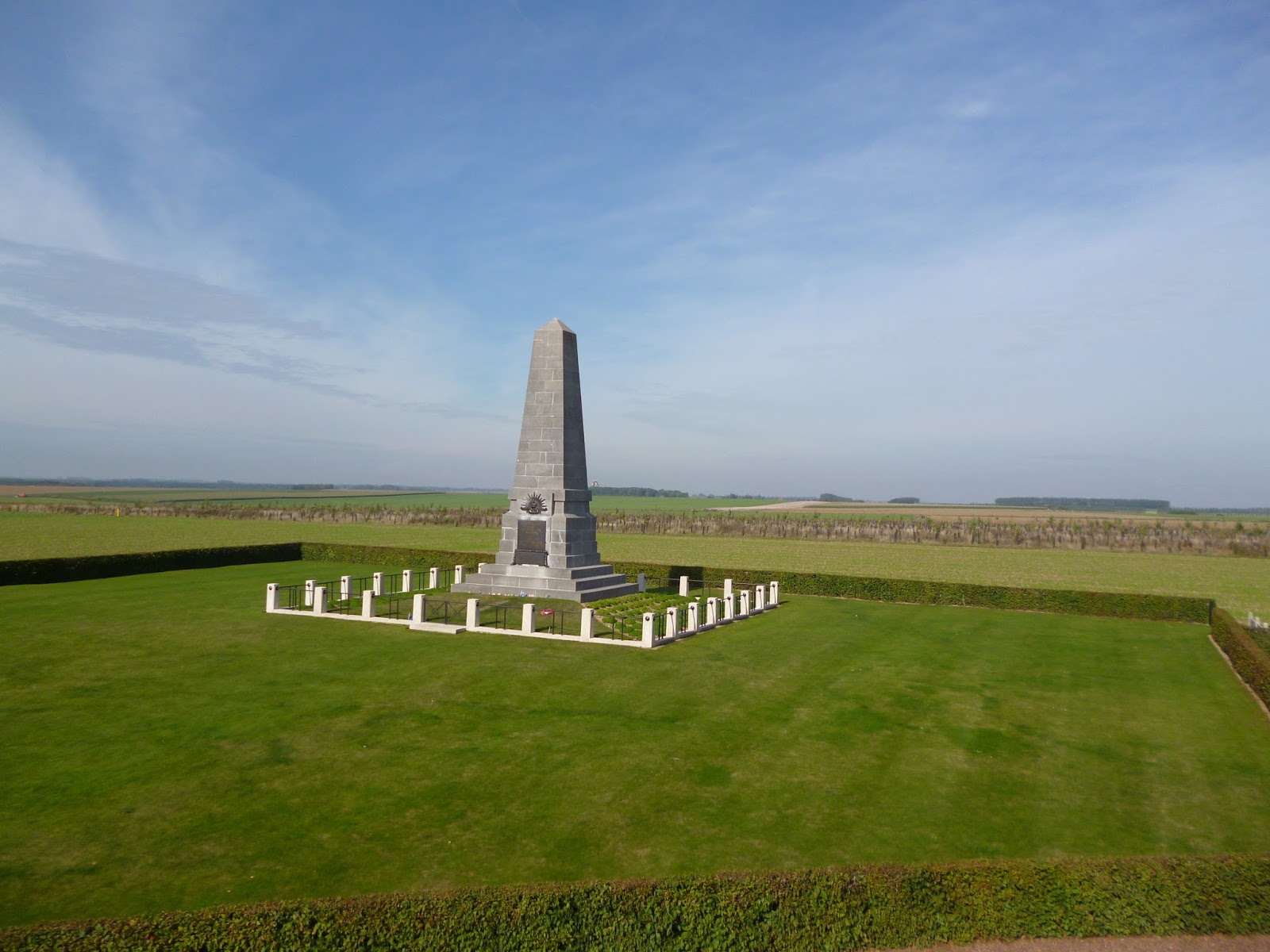 Anyone who doesn’t know of the devastation wrought on this town in those dark days of 1916 would never guess today it was the scene of so much human madness almost a century ago. It is a typical little French village, well kept houses, green, well manicured lawns, a nice little place on the way to somewhere else. The surrounding fields tell the tale and in their bowels lie thousands of young men from Australia, lost forever from their homes and hearths.