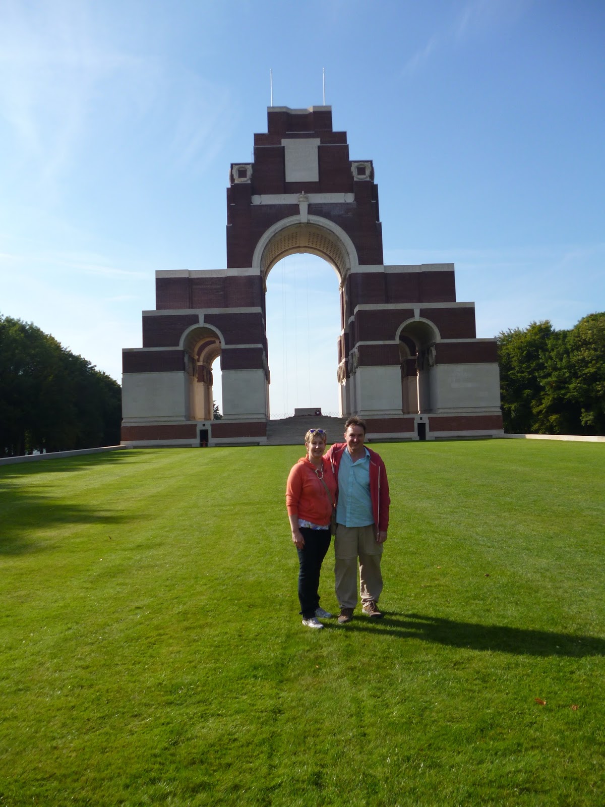 Leaving Pozieres, if you watch the television closely, you will notice a huge memorial on the skyline as the race continues west. It is the memorial at Theivpal, dedicated to the thousands of British soldiers who died in the Somme offensive who have no known grave. An impressive memorial if ever there was one and I can only imagine the detour off the Albert-Bapaume Road is exclusively designed to take in the site.